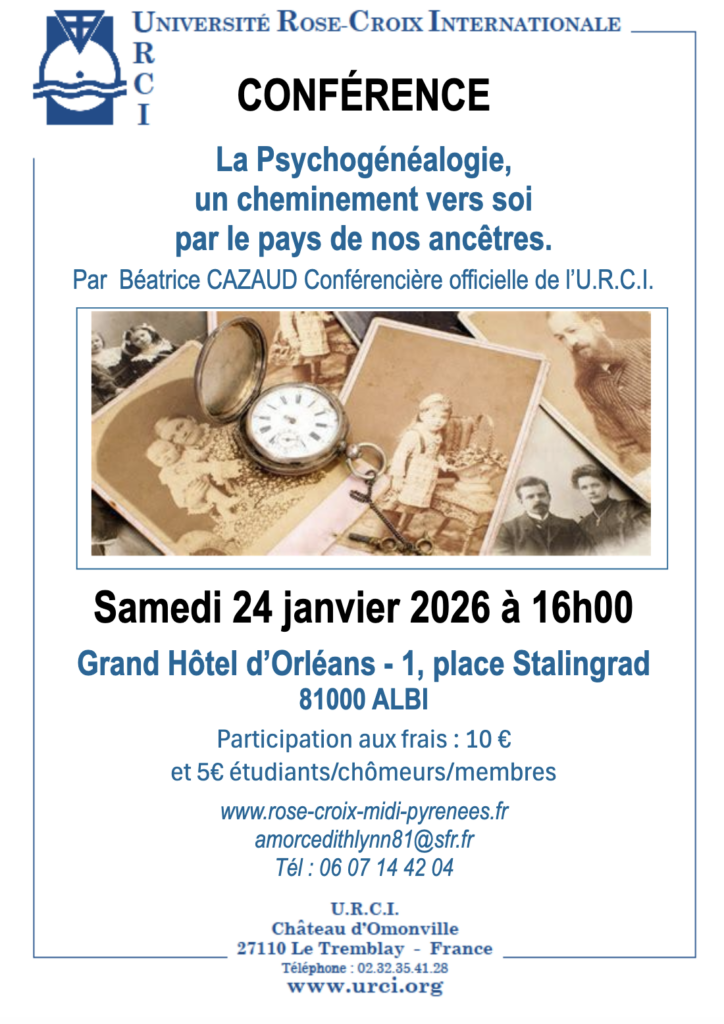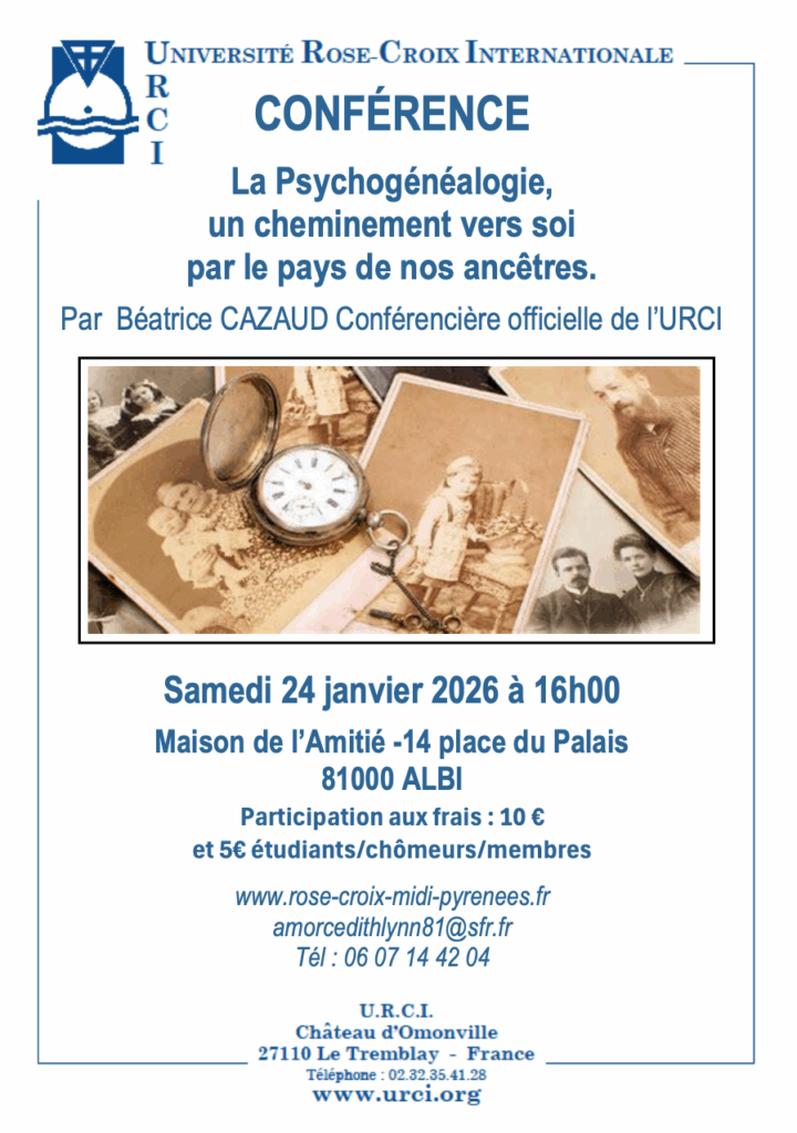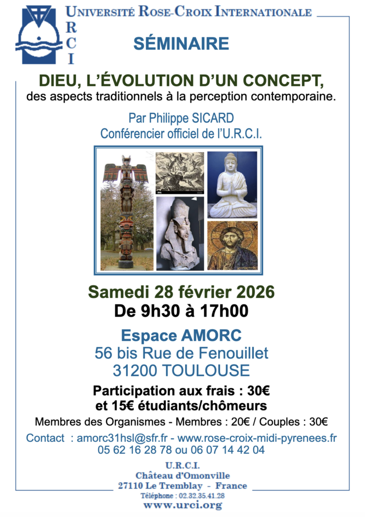 Vous trouverez sur ce site des informations concernant les conférences, séminaires, réunions-débats et autres activités publiques organisées par l’Ancien et Mystique Ordre de la Rose Croix – A.M.O.R.C – en région Midi-Pyrénées.